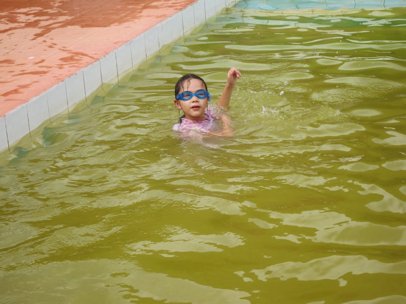 Amelia enjoying the hot springs which flow down from the nearby volcanic mountain. Notice the greenish color, due to sulphur content.